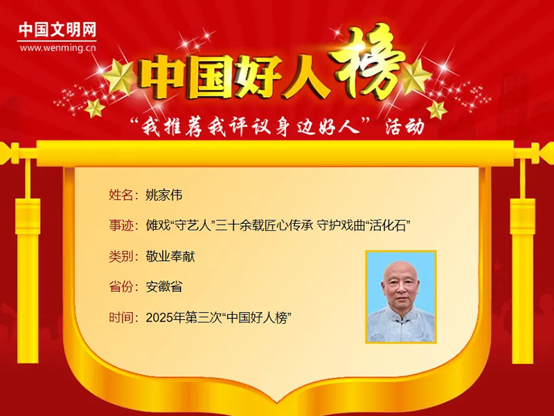 我市姚家偉榮登2025年第三次“中國(guó)好人榜”