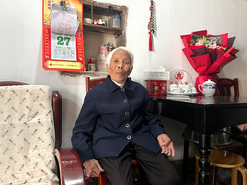 與此同時,在杏花村街道池口社區(qū),101歲的丁桂花老人正安享著她的晚年。雖然因去年不慎摔倒后需依靠輪椅行動,穿衣、洗浴需要兒女幫助,但她還是閑不住,經(jīng)常坐在輪椅上幫忙做飯。