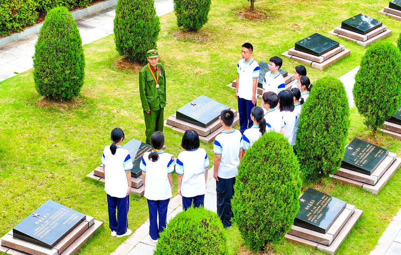 市第六中學(xué)多功能報(bào)告廳內(nèi)座無(wú)虛席。92歲抗美援朝老戰(zhàn)士曹錦玉和“全國(guó)模范退役軍人”江建軍身著軍裝,通過(guò)回憶戰(zhàn)火紛飛的往昔歲月,為師生講授生動(dòng)深刻的“紅色第一課”,臺(tái)下不時(shí)響起陣陣掌聲。當(dāng)天,該校高二(三)班學(xué)生來(lái)到池州烈士陵園,在凌霄烈士墓前,聆聽(tīng)烈士英勇事跡,感悟紅色精神的厚重與力量。