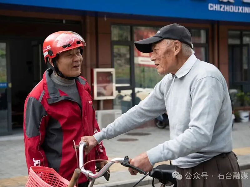 ↑10月26日,檀世旺配送快遞時幫助一位老人推車。
