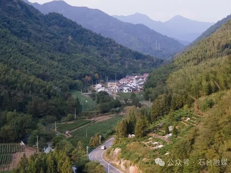 ↑10月27日,檀世旺駕駛面包車行駛在石臺縣蓮花村的山路上(無人機照片)。
