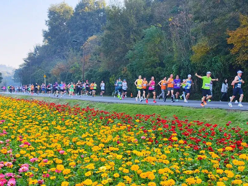 百日草、硫華菊、黑心菊、荷蘭菊……踏上“最美花海賽道”,各色花卉競相綻放,形成總面積約5萬平方米的綿延花帶。微風(fēng)拂過,花香裹挾著草木清香撲面而來,沁人心脾,有效緩解了奔跑中的視覺疲勞。唐義龍?zhí)匾鈴耐獾刳s回池州參賽:“一路被鮮花簇?fù)恚ㄏ愀_步走,原本擔(dān)心的枯燥和累都沒了,給家鄉(xiāng)點(diǎn)贊?!眮碜院币瞬呐苡巡榕嗳巾樌曩悾f:“這種有風(fēng)景的賽事很舒服,回去會推薦給身邊跑友?!?/font>
