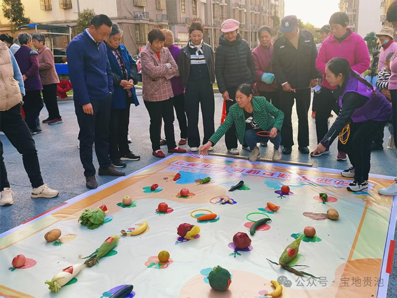 活動(dòng)現(xiàn)場(chǎng)最受歡迎的當(dāng)屬那“接地氣”的套圈攤子。不同于常見的玩具獎(jiǎng)品,攤子上滿滿當(dāng)當(dāng)陳列著香蕉、蘋果、花椰菜、土豆、胡蘿卜、茄子等各色果蔬,全是居民日常生活里離不開的“硬通貨”?!跋热√?hào),站在線外,看準(zhǔn)了再扔!”志愿者話音剛落,居民們便排起了隊(duì),摩拳擦掌躍躍欲試?!疤走@個(gè)!這個(gè)茄子圓滾滾的,好套!”“哎呀差一點(diǎn),下次肯定中!”“我套到花椰菜和包菜啦,回家能炒好幾個(gè)菜,值了!”此起彼伏的歡呼聲與調(diào)侃聲里,老人們臉上的笑容格外燦爛,現(xiàn)場(chǎng)活力滿滿,十分熱鬧。