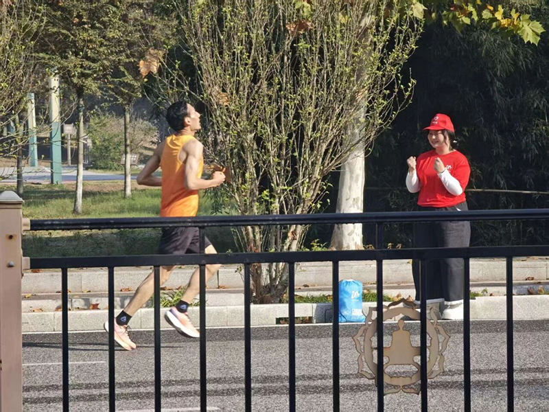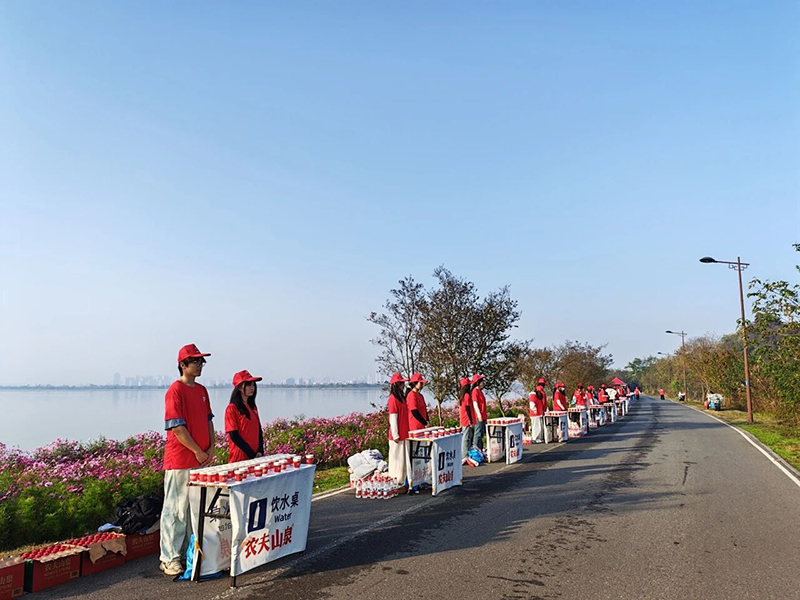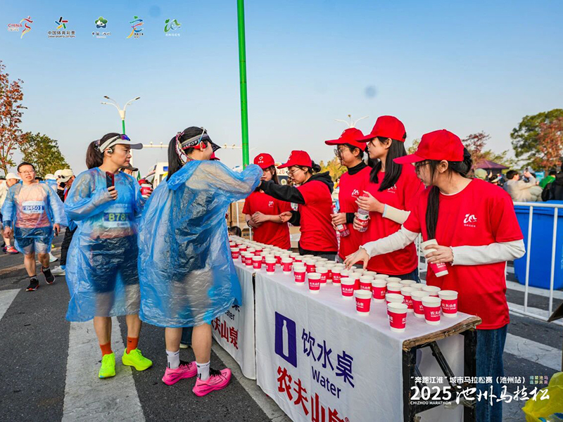 20公里補給站點處,選手們已顯露疲態(tài),這里的志愿者早已蓄勢待發(fā)。志愿者們雙手各攥一瓶礦泉水,目光緊緊追隨著選手的身影,待他們跑近,立刻精準遞上:“喝口水補充體力,加油沖呀!” 她笑著補充:“這瓶水雖小,希望能給他們多添一份向前的力量?!?現(xiàn)場,志愿者們分工明確,動作快而不亂,用熱情為選手們的征程 “續(xù)航”。